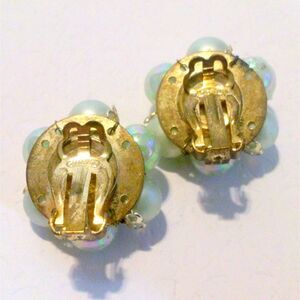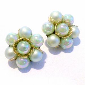 Vintage Mid Century Mint Green Bead Cluster Clip Earrings