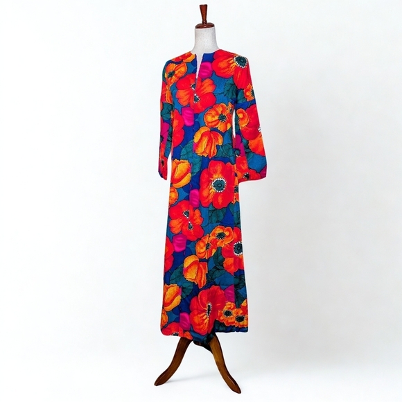 A gorgeous and vibrant handmade vintage mod maxi dress