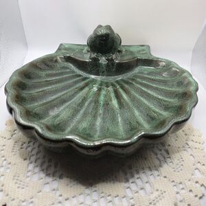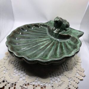 Vintage Mid Century Modern Art Pottery - Large Shell with perching frog 12 x 12