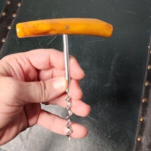 This vintage mid-century modern corkscrew is a must-have for any barware collector. The bakelite handle adds a touch of style and elegance to the piece, making it a great addition to any kitchen or home bar. Its original and authentic design is perfect for those who appreciate the mid-century modernism style. The corkscrew is specifically designed for opening bottles and is perfect for any occasion. Its handle provides a comfortable grip, making it easy to use and ensuring that you can open the bottle with ease.