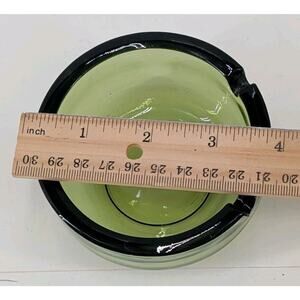 Vintage Mid Century Modern Green Glass Ashtray 3.75" Round 2 Slots