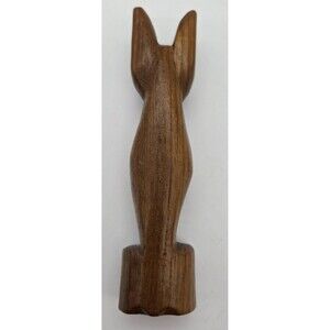 Vintage Hand Carved Teak Wood Cat Figurine 5.75in Mid Century Style