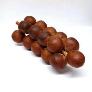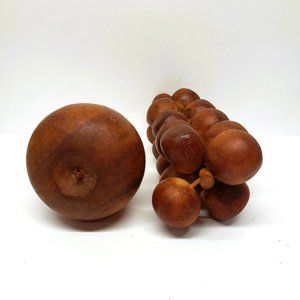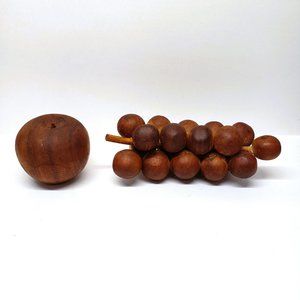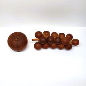 Vintage Mid Century Modern MCM Carved Wood Fruit Grapes Cluster 7" Apple 2.5"