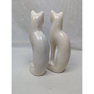 Vintage Mid Century Modern Pair White Cats Green Eyes Figurines Retro Set of 2