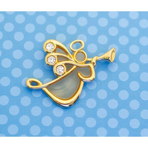 Vintage Mid Century Musical Angel Faux Rhinestone Brooch by LC