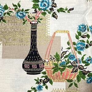 Vintage Mid Century NEW Pair Floral Toile Kitchen Cafe Curtains Scalloped Tabs