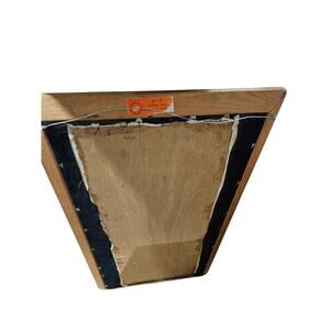 Vintage Mid Century Peacock Crewel 15x32 in Oak Framed Kitsch Boho Handmade