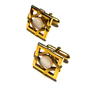 Vintage Mid Century SWANK Cufflinks gold lattice & opalescent white MOP stones