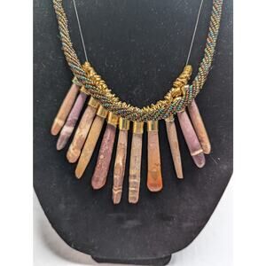 Vintage Mid Century Statement Piece Stone Necklace Seed Bead Braided