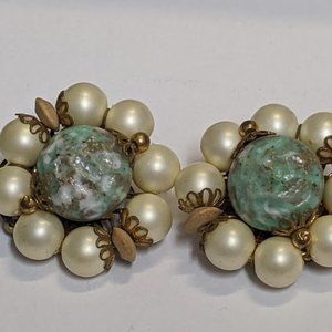 Vintage Mid Century Thermoset Faux Pearl Earrings