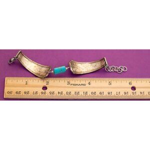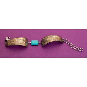 Vintage Mid Century Turquoise Silver Tone Bracelet 7 Inches - Q2