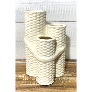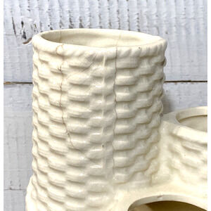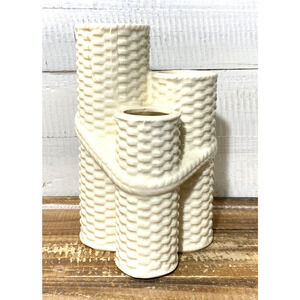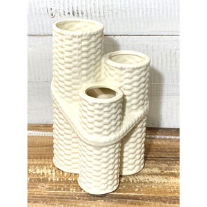 Vintage Mid Century White Three Tier Basket Weave Vase Planter 8.625" Made in Japan