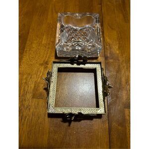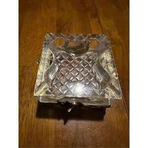 Vintage Mid Century modern MCM Thick Glass with Gold Tone Floral Holder Ashtray