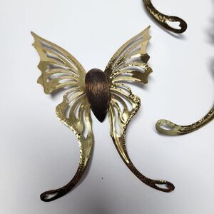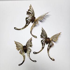 Vintage Mid Century Brass And Wood Set Of 3 Butterflies, all 3 in great shape