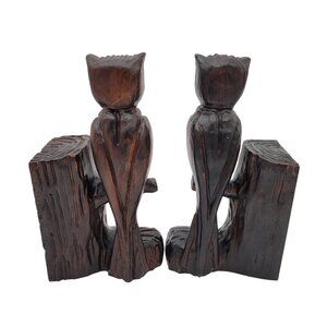 Vintage Mid Cenutry 1960's Carved Wood Owl Bookends from Spain
