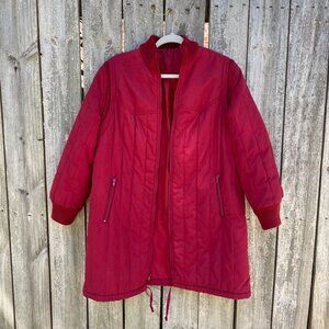 Vintage Mid Length Quilted Coat in Red Size Medium Oversized Small