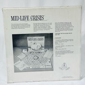 Introducing the Vintage Mid Life Crisis Board Game from 1982, a retro adult party game designed to bring humor and fun to gatherings. This collectible game captures the spirit of the early 80s with its nostalgic themes and playful challenges. The box is new, sealed, and in excellent condition.