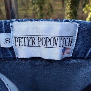 Peter Popovitch Vintage Mid Wash Denim Skirt Maxi Zip Front Pockets & Slit Elastic Back Sz S