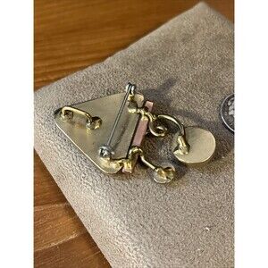 The brooch is a unisex accessory that can add a touch of vintage charm to any outfit. It is signed by the brand Modern Vintage and is an original piece, making it a truly unique find. The metal material is unknown, but the base metal is gold. Don't miss out on this one-of-a-kind brooch pin pendant that will surely make a statement.