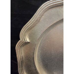 This is a vintage pewter plate from the 1960's, crafted for Holiday Inn Hotels by InnKare in the USA, specifically Memphis, Tennessee, intended for serving bread and butter or your favorite desert. The beautiful scalloped edge is known as the "Queen Ann's" pattern and adds an elegant touch to any setting. Approximate measurements: 7.5 in x 7.5 in x 0.5 in. Please see the provided photos for further details. (Props not included.)