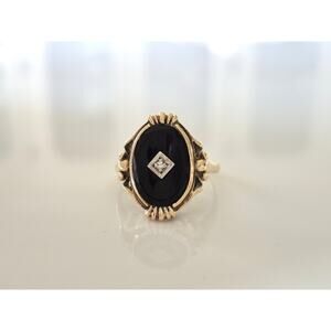 Vintage Mid-Century 14K Gold Onyx and Diamond Ring