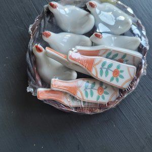 Vintage Mid-Century Chicken Porcelain Chopstick Rests