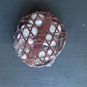 Beautifully hand-painted mid-century, Showa era, chopstick rests. You have a flock of five, elegant little white hens and five paddle shapes ornately painted in a floral motif. They come in a rattan basket for storage or display.
