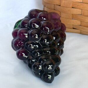 FEATURES: Beautiful vintage glass grape cluster in rich, deep purple with a glossy finish and a green glass leaf / A classic piece of mid-century decor, often used in fruit bowl displays, kitchen arrangements, or bar cart styling / Handcrafted glass construction / Heavy and solid feel / see photos for more details CONDITION: Excellent Condition with no chips, cracks, or breaks - from a non-smoking home