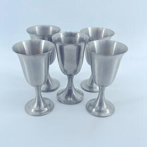 Vintage Mid-Century MCM Leonard aluminum pewter barware drinkware goblet set of 5