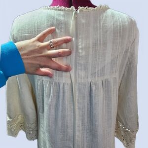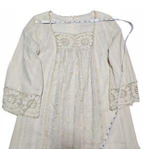 American, vintage, vntg, prairie, Victorian, edwardian, 50s 60s 70s, cottage, cottagecore, grannycore, unique, collector, collection, lace, eyelet, made in the USA, whimsical, elegant, classic, dreamy, fun, gypsy, gypsie, fully lined, wide sleeve, cream, ivory, off white, gift idea, fast shipping