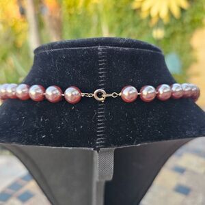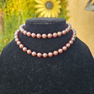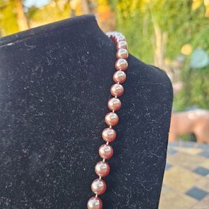 Beautiful vintage pearl necklace. Features lustrous glass rose gold pearls. Perfect for any occasion.