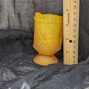 Vintage Mid Century Small Amber Glass Floral Footed Pitcher 3.5" Tall.