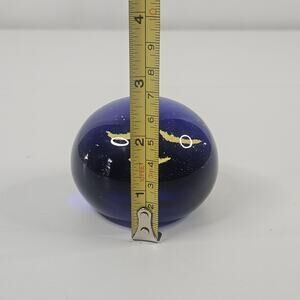Vintage Mid-Century Yellow Blue Clear Bubbles Elliptic Sphere Face Paperweight
