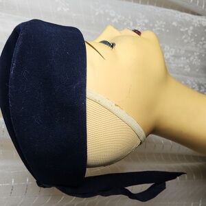 Vintage navy blue felt tilt hat (also known as a pillbox or Glengarry style hat) from the 1940s or 1950s.