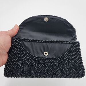 This vintage black floral beaded evening bag clutch is a stunning piece from the Mid Century era, dating back to 1930-1950.