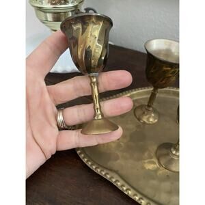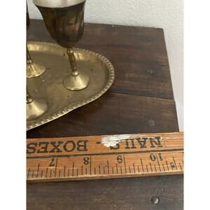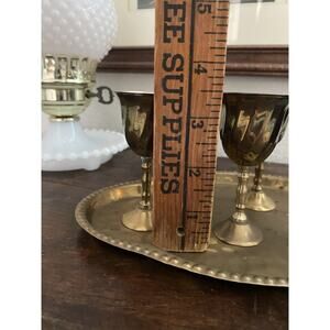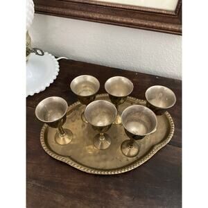 Vintage Midcentury Brass Serving Tray Cordial Goblets Vintage Barware MCM