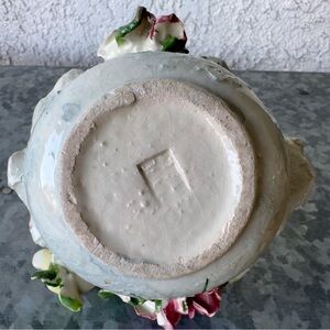 Vintage Mid-century Italian Capodimonte Style Porcelain Basket w/ Roses & Bird