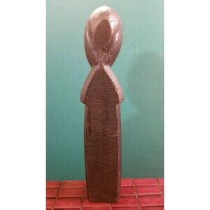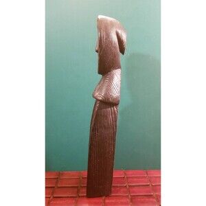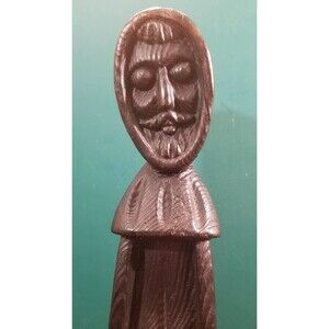 Vintage Midcentury Tollosan Style Carved Wooden Medieval Priest or Monk Statue 12.5"X2.75"X2"