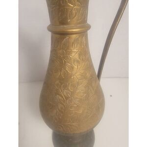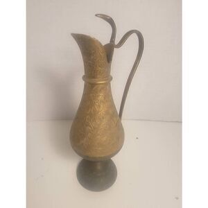 Handcrafted with intricate detailing, this stunning piece takes you back to the charm of Middle Eastern traditions. Made of brass with an exquisite leaf pattern etched design, it features an elegant snake handle that adds a touch of uniqueness to your collection. This vintage pitcher is perfect for serving your favorite beverages or showcasing as a decorative accent in any room of your home. With its timeless beauty, it's sure to become a conversation starter among your guests. Bring a piece of history into your space with this vintage treasure!
