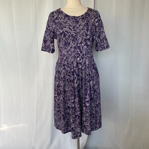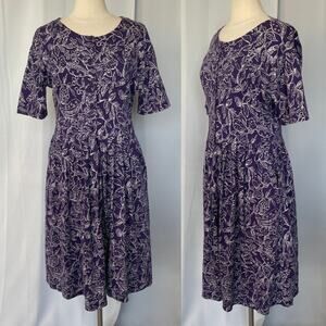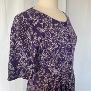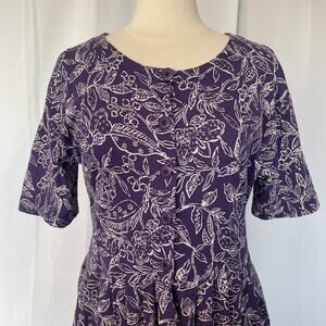 Vintage Midi Dress Size Medium Petite Purple White Floral A Line Button Cottage