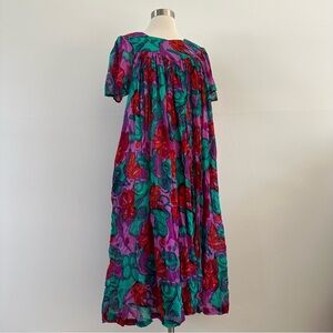 Vintage Midi Maxi Dress 100% Cotton Floral Sz S