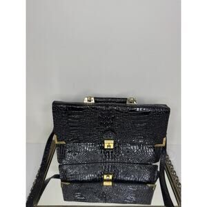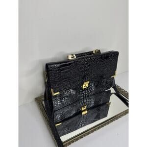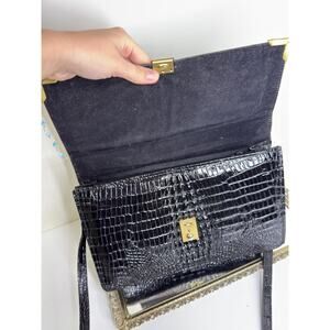 Vintage Mido Korea Black Patent Leather Embossed Croc Texture Top Handle Shoulder Bag Purse Brief