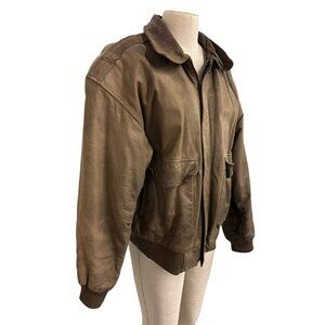 Vintage Midway Brown Genuine Leather Bomber Jacket Size 42 With Front Pockets an