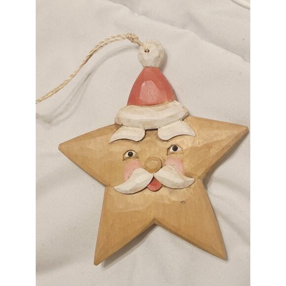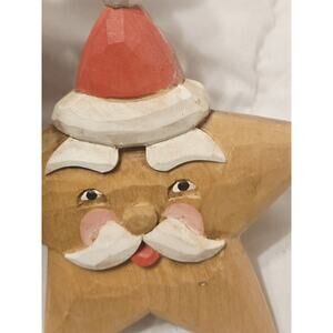 Vintage Midwest Cannon Falls Carved Wooden Face Santa Star Ornament B48