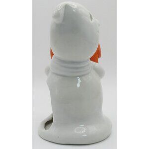 Add a touch of nostalgic Halloween charm to your home with this vintage Midwest Taiwan ceramic ghost holding a pumpkin jack-o’-lantern. The ghost and pumpkin both feature open cutouts for a tealight or small LED candle, creating a warm, spooky glow when lit.