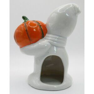 Vintage Midwest Halloween Ceramic Ghost Pumpkin Candle Holder Luminary Retro
