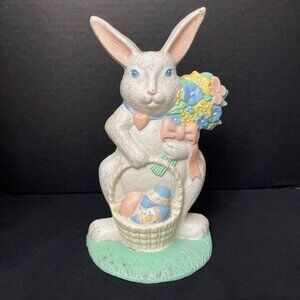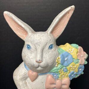 Vintage Midwest Imports Cast Iron Doorstop. Bunny Rabbit with Flowers & a Basket of Eggs. Made in Taiwan. Good condition. Normal signs of age/wear. Please see photos.