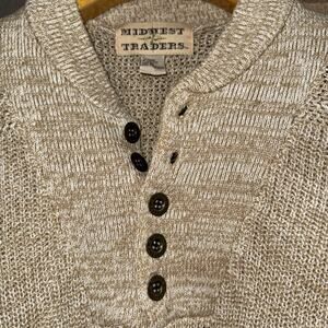 Vintage Midwest Traders Fisherman Oversized Sweater Henley Beige Birdseye Sz M