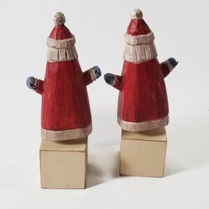 This is an adorable pair of vintage Midwest of Cannon Falls Santa Ho Ho block figurines. One of the Santas glue has failed so he is removable. There is scratch on the top of the block on that one as well.