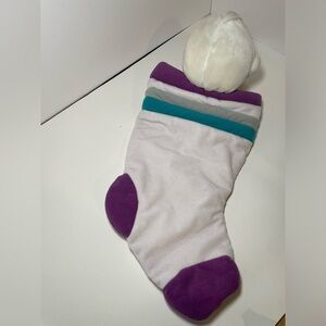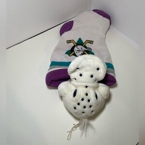 Celebrate the holidays with this Mighty Ducks themed stocking. Features plush details and vibrant colors. Perfect for fans and collectors. Approx 21 inches long and 10 inches wide. Great vintage condition from approx. 2005.